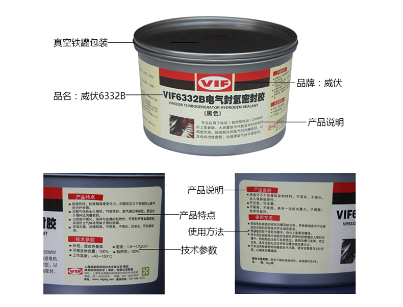 VIF/威伏的平面密封厌氧胶威伏电气封氢密封胶,威伏6332W,2kg/罐【白色,性能最优】
