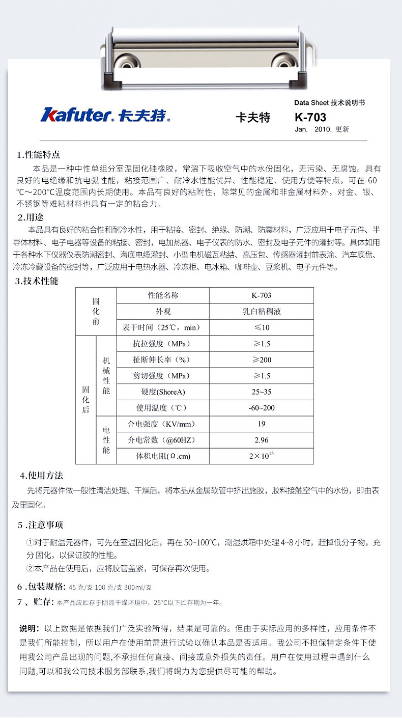 艾逊订货号:H1008227 原始型号:卡夫特 703,45g/支 品牌:kafuter/卡夫特 品牌所属地:中国