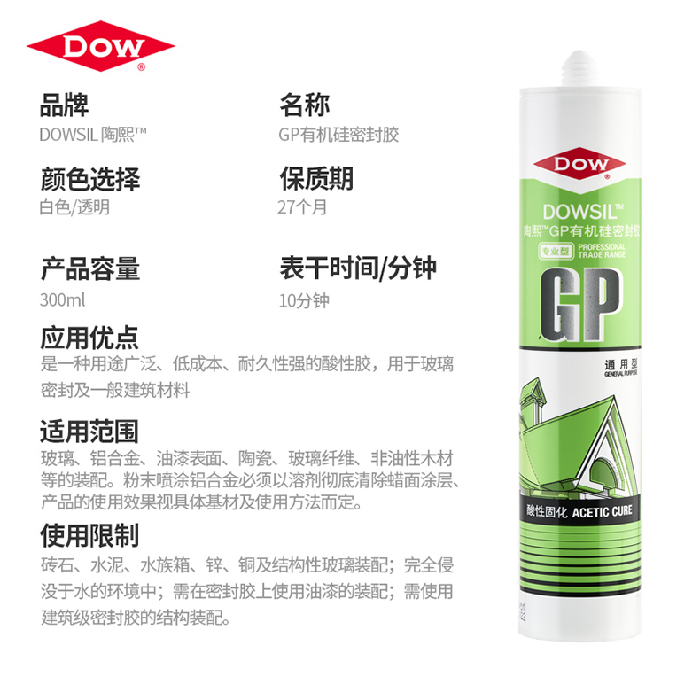 DOWSIL/陶熙的硅酮密封胶陶熙酸性硅酮密封胶,GP系列铝色,300ml