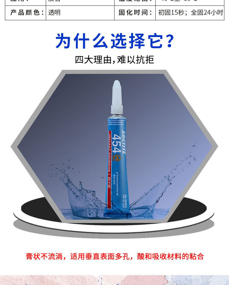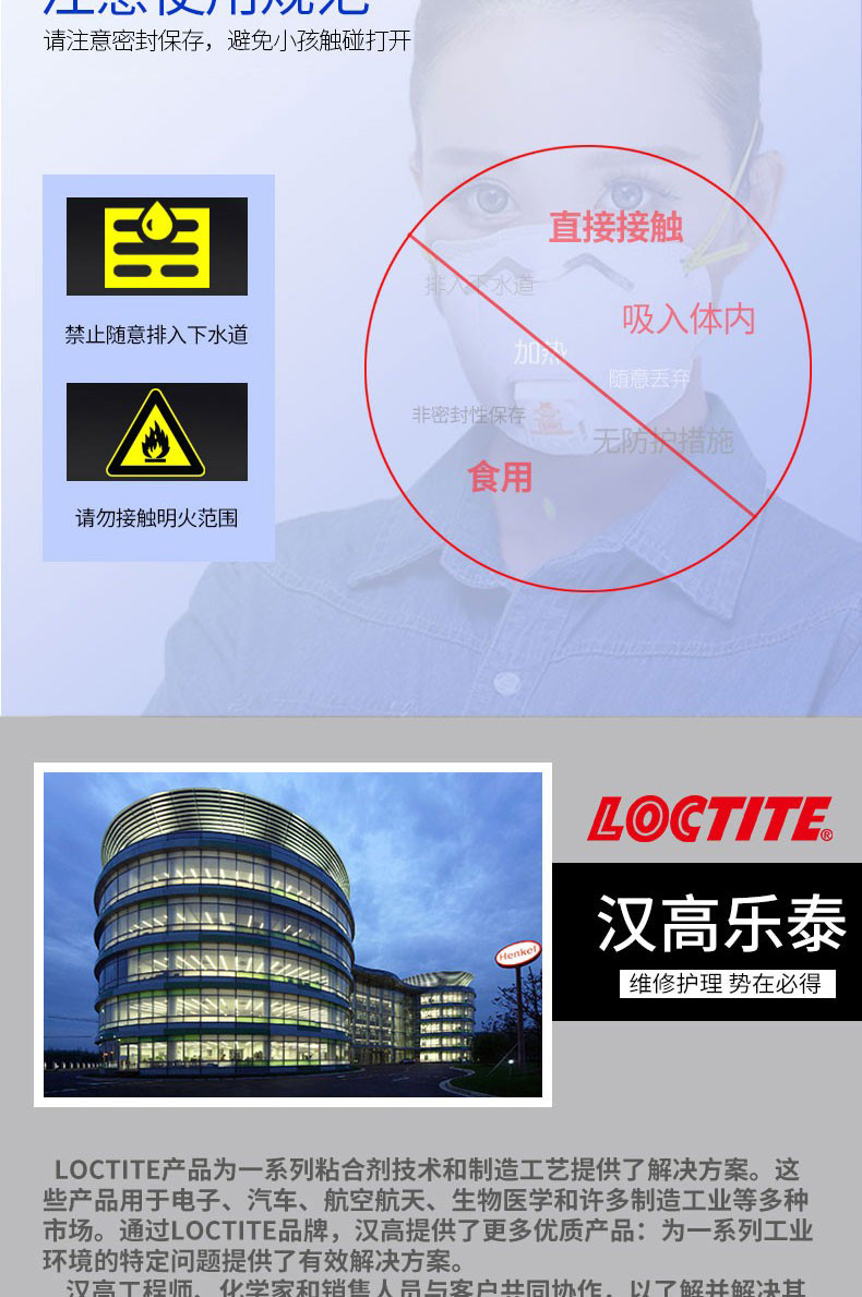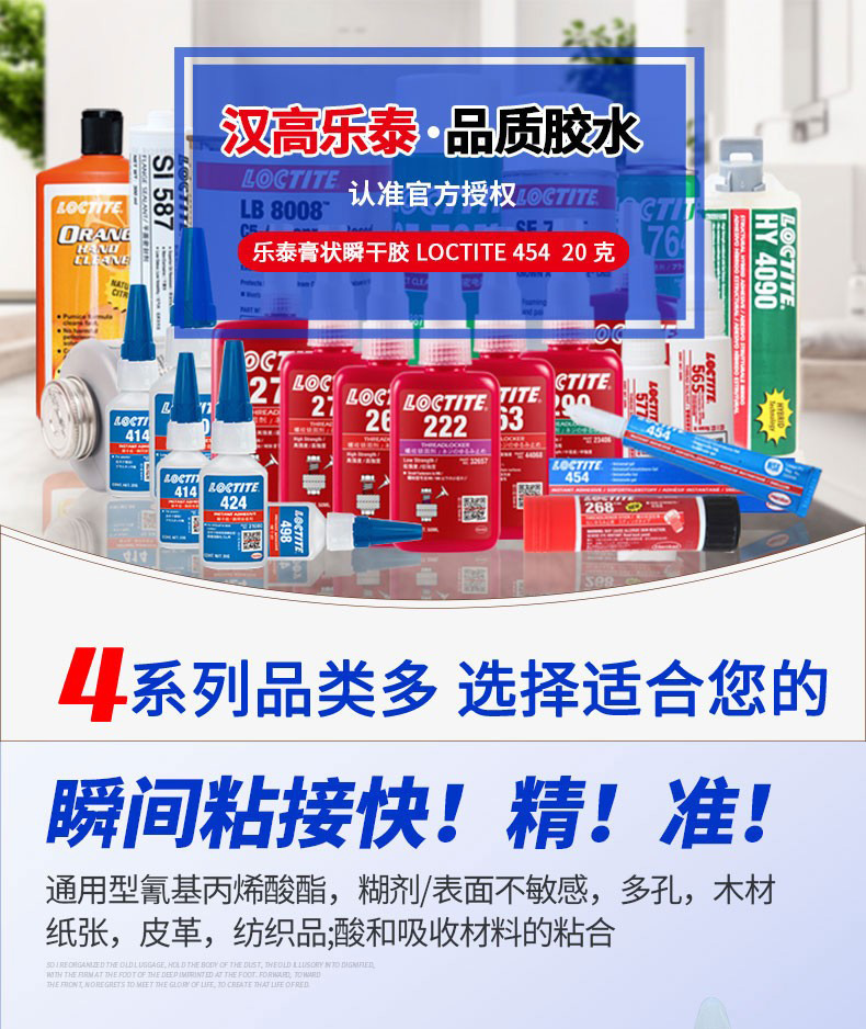 艾逊订货号:H1008396 原始型号:乐泰 Loctite 454/20g 品牌:Loctite/乐泰 品牌所属地:美国