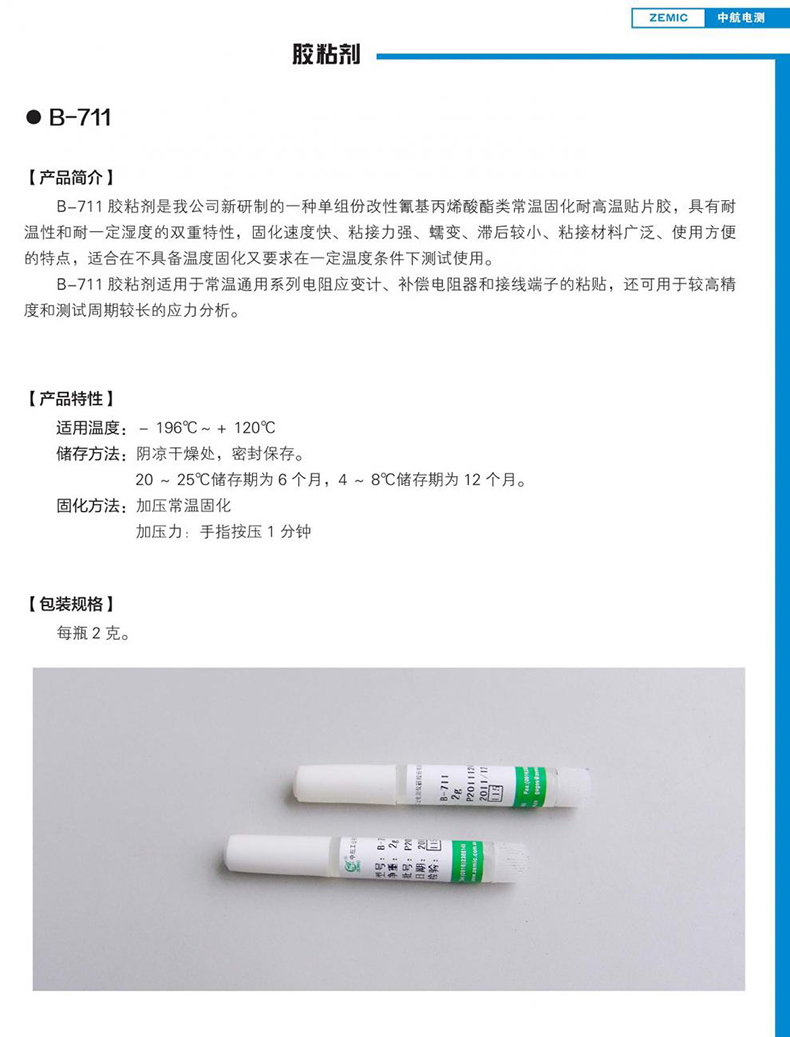 ZEMIC/中航电测的环氧结构胶中航电测贴片胶,B-711,2G/支