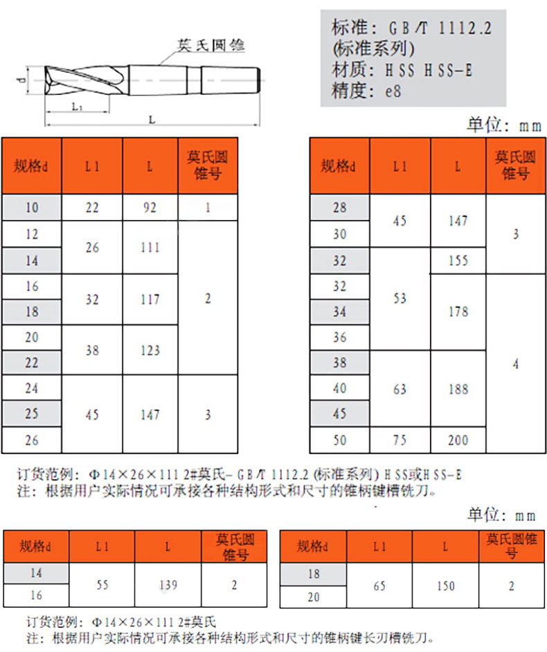 柄部类型 莫氏锥柄