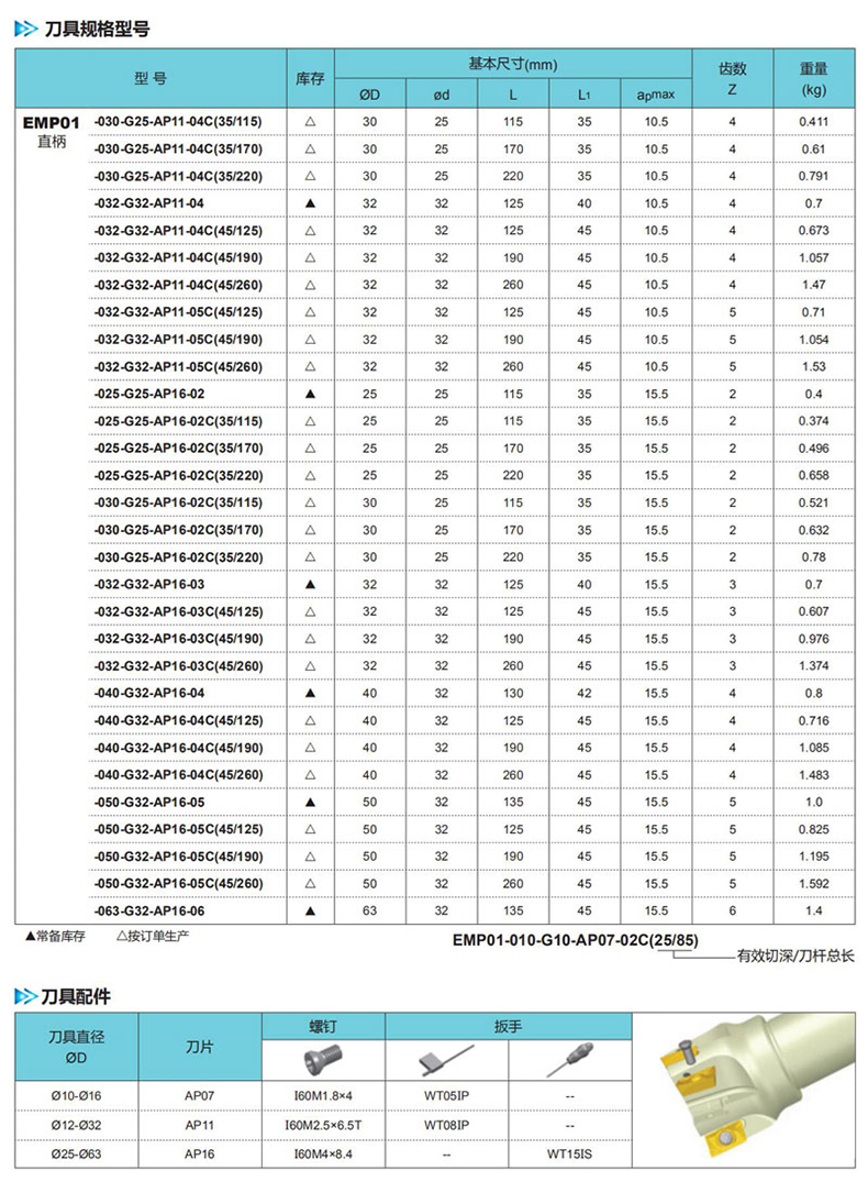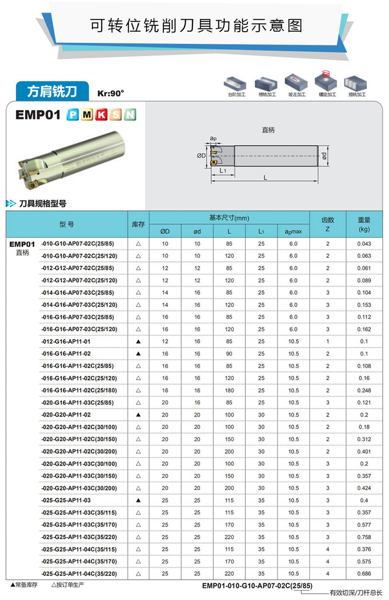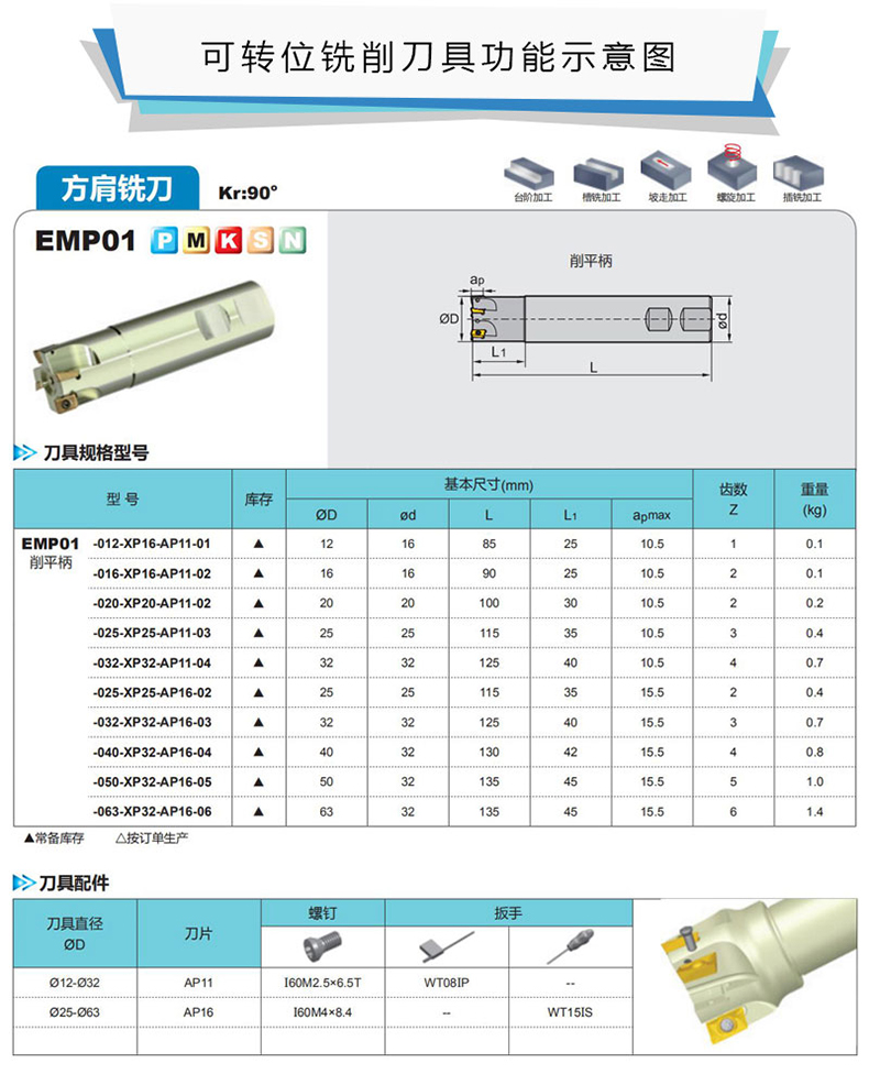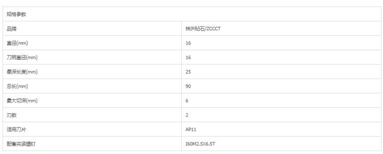 艾逊订货号:C1025389 原始型号:株洲钻石 90°方肩铣刀,EMP01-016-G16-AP11-02 品牌:ZCCCT/株洲钻石 品牌所属地:中国