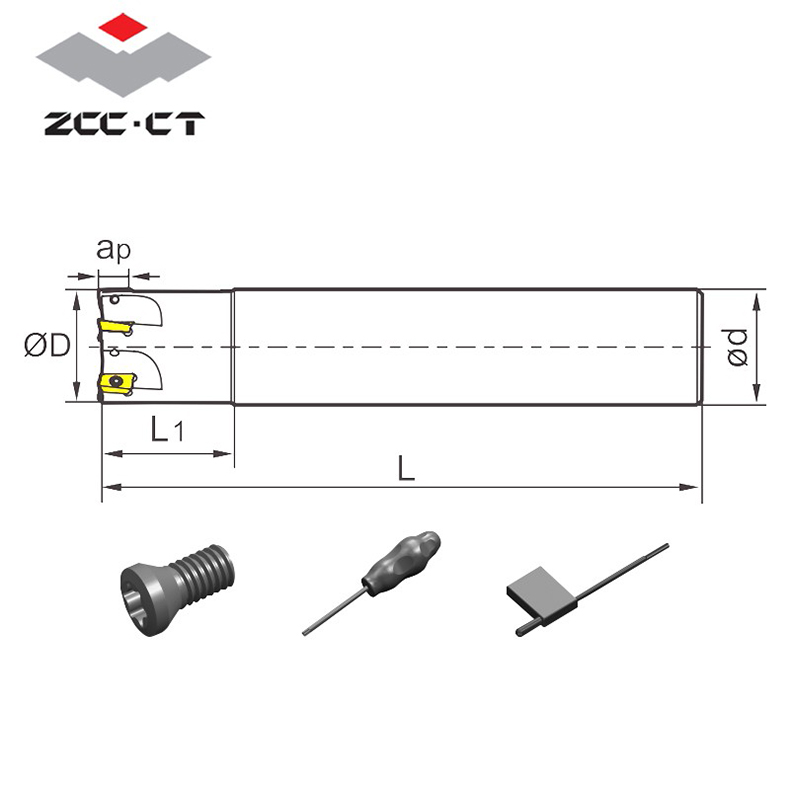 ZCCCT/株洲钻石的可转位直柄铣刀杆株洲钻石90°方肩铣刀,EMP01-016-G16-AP11-02