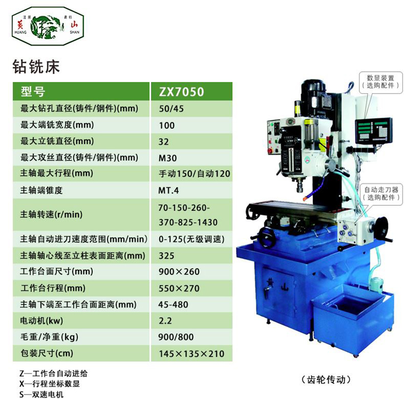 HUANGSHAN/黄山的铣钻床黄山钻铣床ZX7050(Z),最大孔径50mm