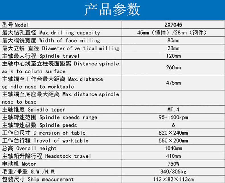 西菱 齿轮式手动钻铣床ZX7045,最大钻孔直径45