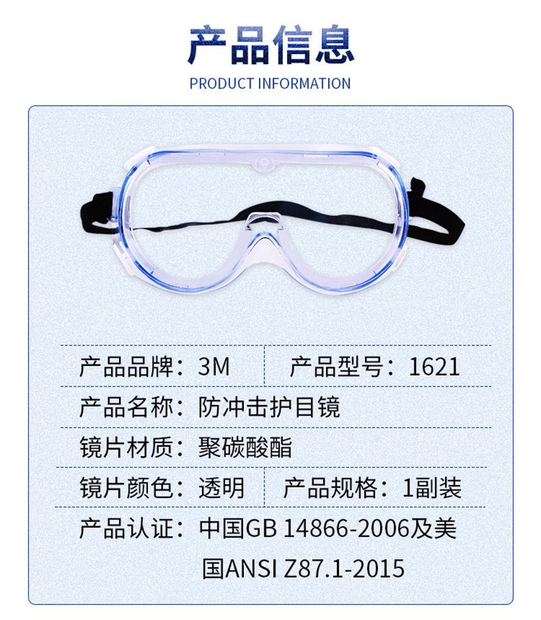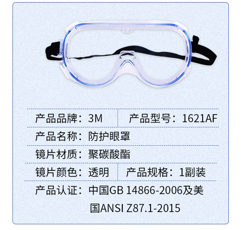 3M的护目镜3M护目镜,1623AF,亚洲款舒适型防化学护目镜