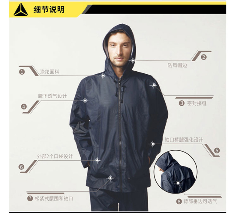 DELTA/代尔塔的雨衣代尔塔DELTAPLUS分体式雨衣,407008-BM-L,EN850藏青色