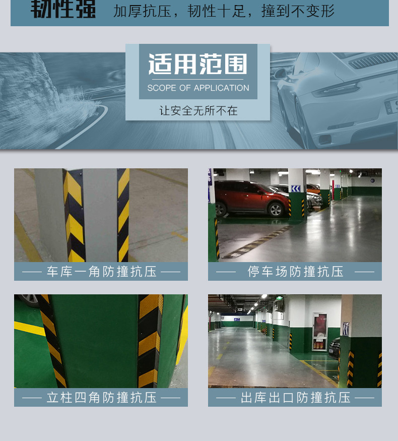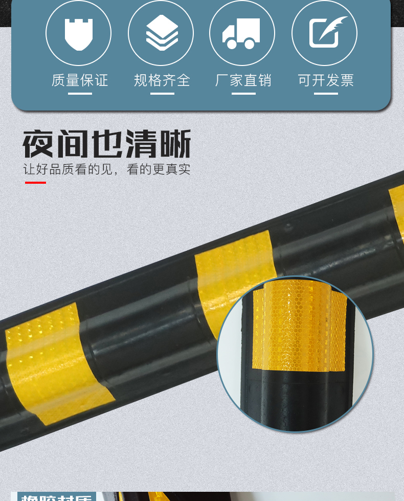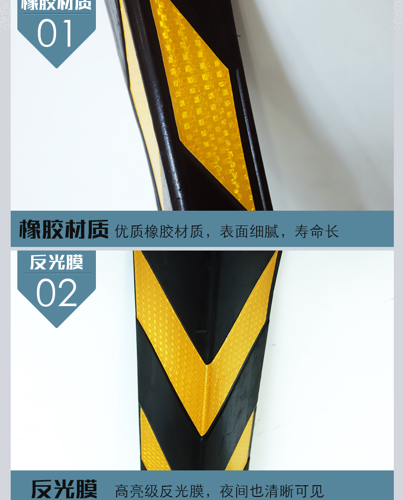 帛拉的墙角保护护角橡胶反光墙面防撞条,W190×T90×L1000MM黑黄相间
