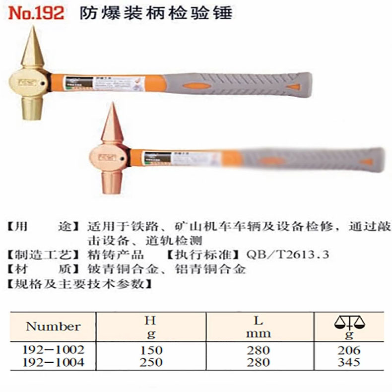 桥防 防爆装柄检验锤,铍青铜,250G,192-1004BE |