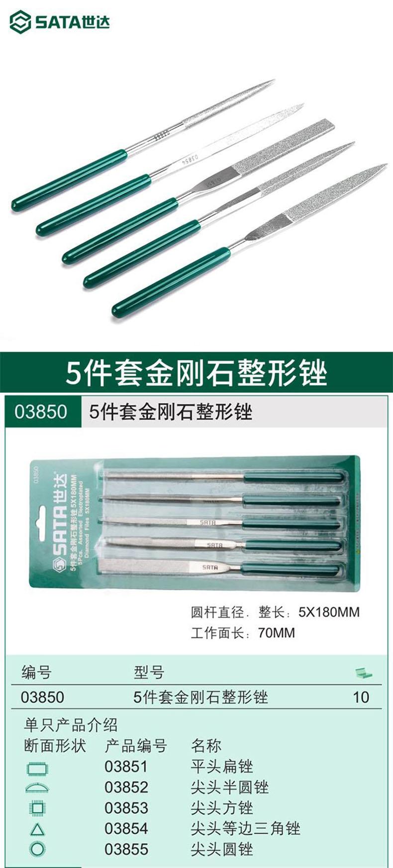 艾逊订货号:D1004478 原始型号:世达整形锉,5件套金刚石整形锉 5X180mm,03850 品牌:SATA/世达 品牌所属地:中国