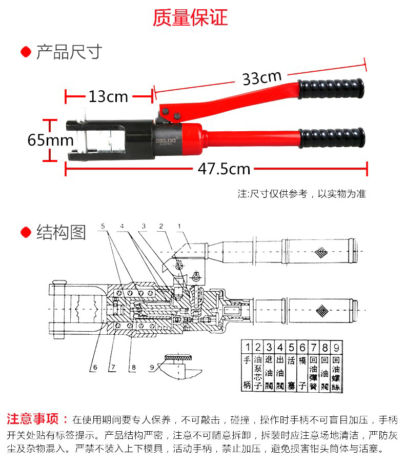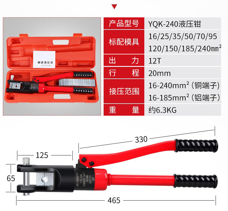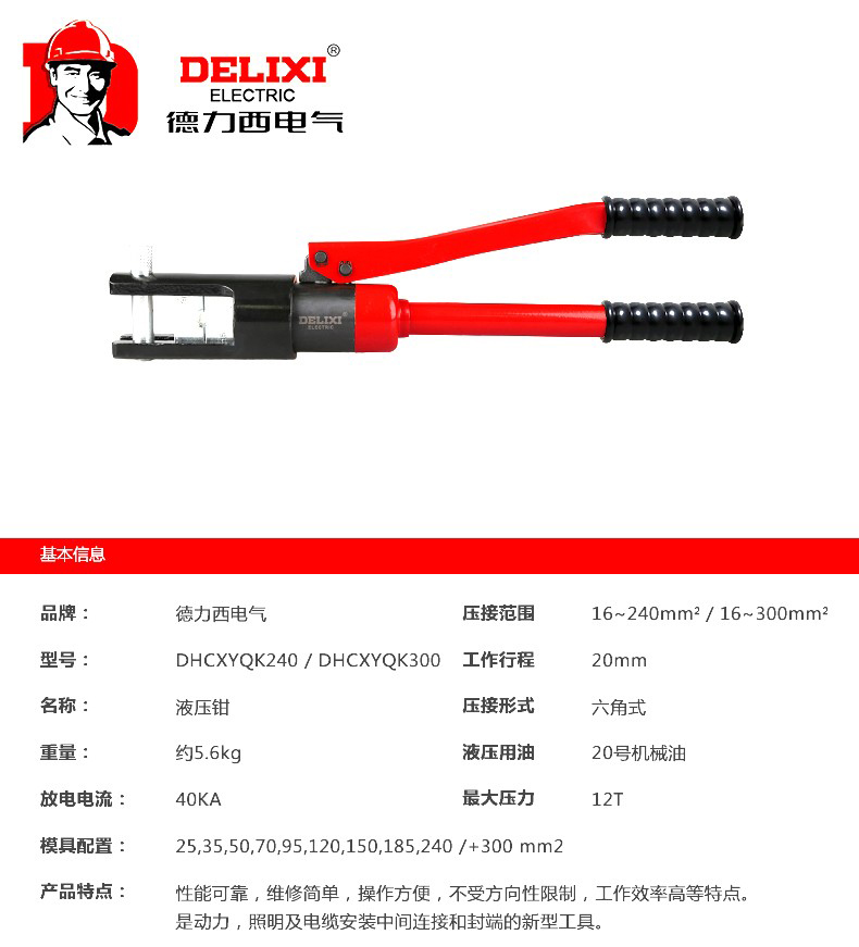 艾逊订货号:D1004546 原始型号:德力西手动压线钳YQK-240 品牌:DELIXI/德力西 品牌所属地:中国