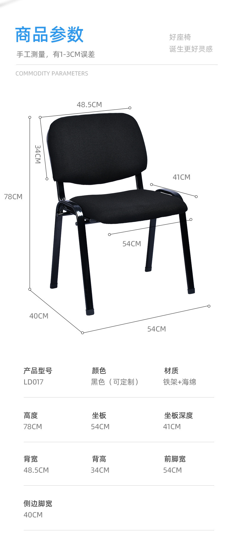 领达的工作椅领达办公椅四脚椅0.8mm管厚蓝色布面