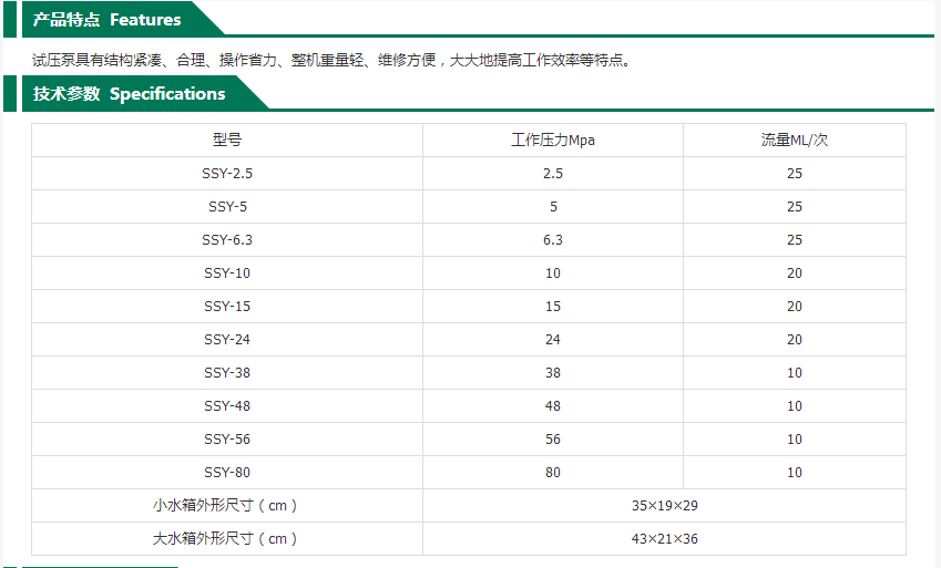 世环的高压泵世环SSY系列手动试压泵SSY-48MPa配大水箱,水箱外形尺寸(cm)43*21*36