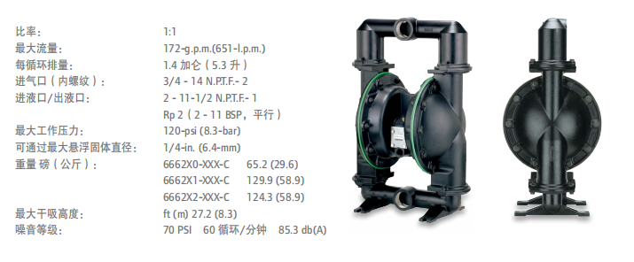 英格索兰/Ingersoll Rand 666271-EEB-C ARO2"金属壳体气动隔膜泵 |