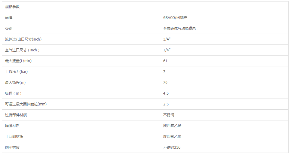 艾逊订货号:B1001343 原始型号:固瑞克/GRACO D54311 3/4"金属壳体气动隔膜泵 品牌:固瑞克/GRACO 品牌所属地:中国
