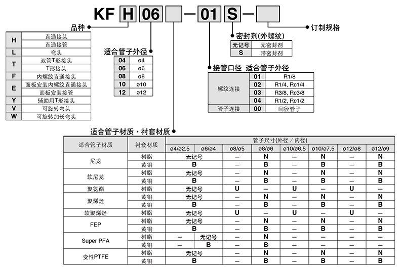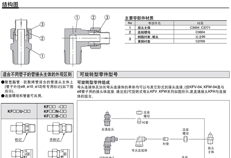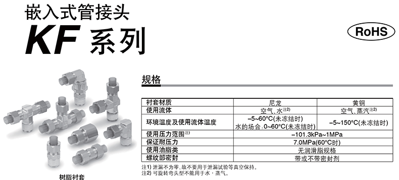 SMC的气动接头SMC直通内螺纹嵌入式管接头,树脂衬套,KFH04-00