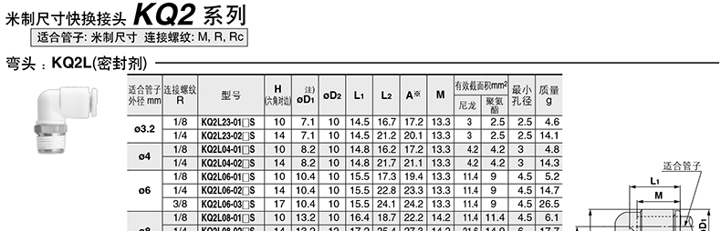 SMC的气动接头SMC公制L型外螺纹弯通快插接头,带密封剂,KQ2L23-02NS