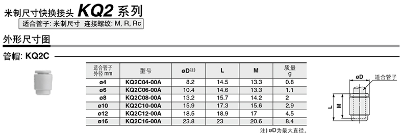 SMC 公制面板安装直通接管,KQ2E02-00NJ |
