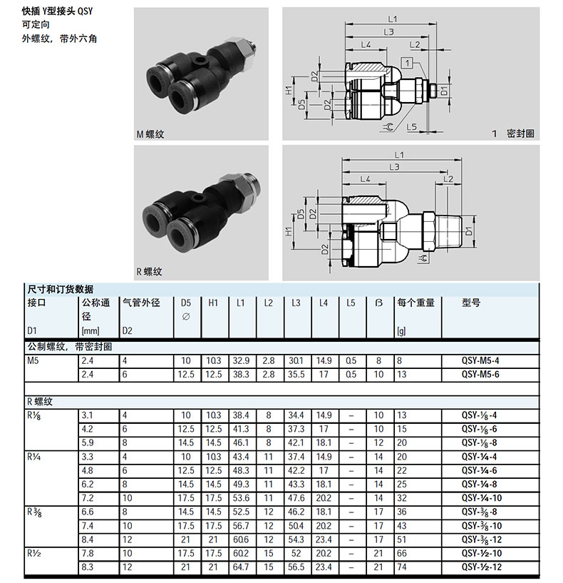 费斯托FESTO 快插式螺纹接头,QS系列,QSY-M5-6,190674 |