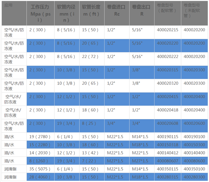 Reelcraft 重型低压输气/水卷轴,低压21bar,软管30M,内径1/2",82100 OL |
