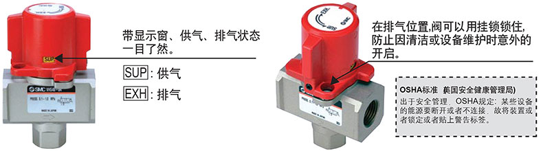SMC 带锁孔残压释放3通手动阀,单作用型,接管口径Rc1/4,铝制上盖,VHS30-02B |