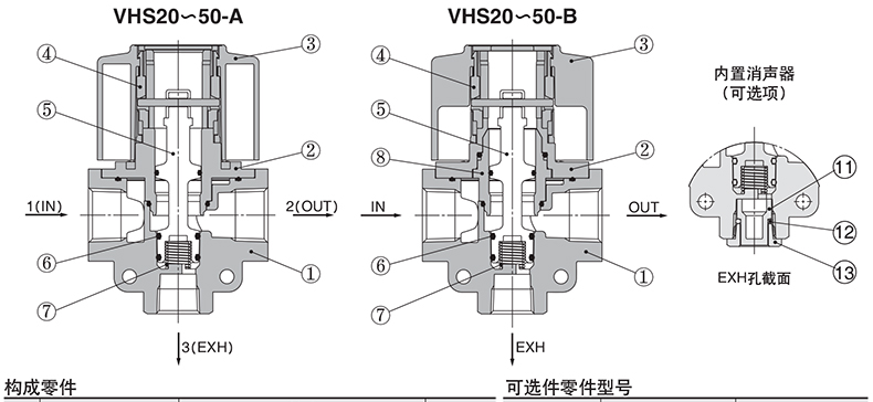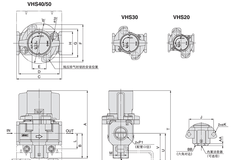 SMC 带锁孔残压释放3通手动阀,单作用型,接管口径G1/2,铝制上盖,内置消音器,VHS40-F04B-S |