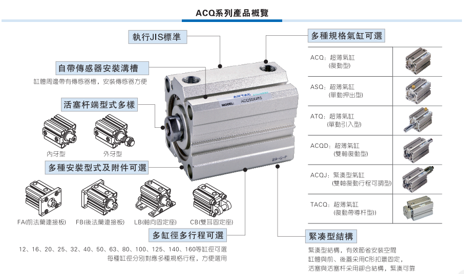 亚德客AirTAC 超薄气缸,JIS标准双作用,ACQ12X40 |