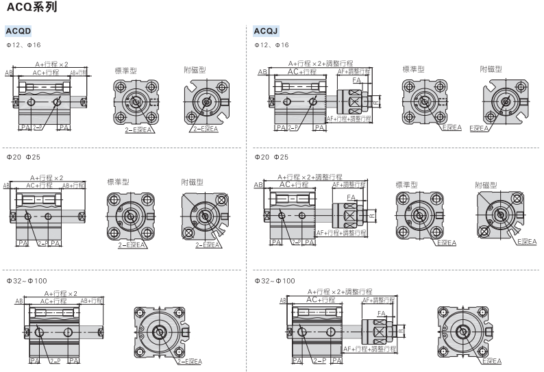 亚德客AirTAC 超薄气缸,JIS标准双作用,ACQ12X20 |