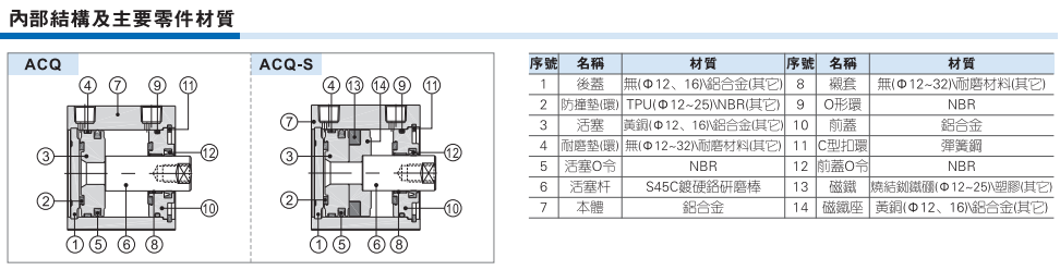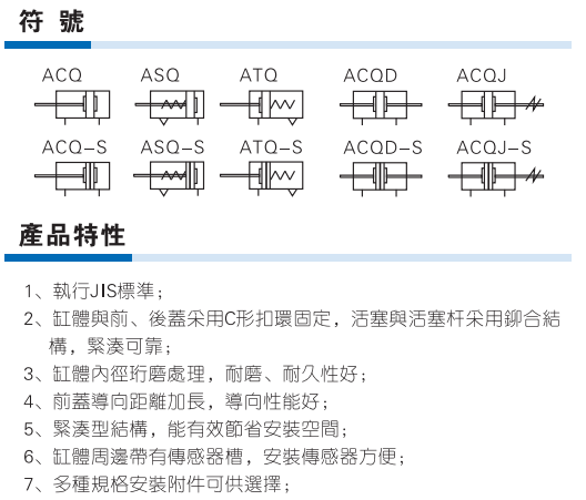 亚德客AirTAC 超薄气缸,JIS标准双作用,ACQ12X10 |