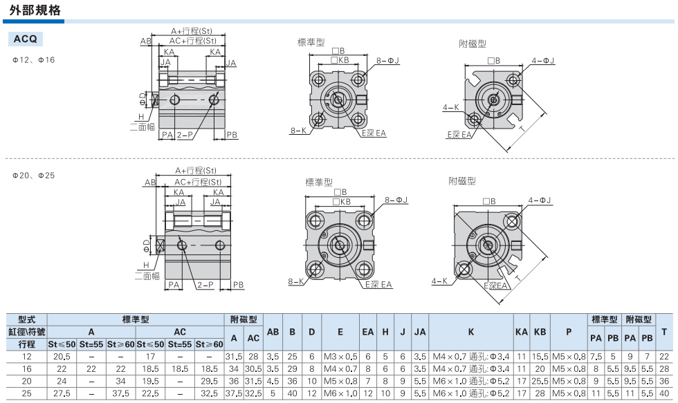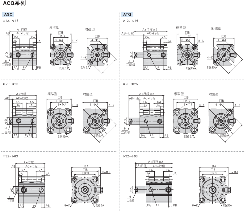 亚德客AirTAC 超薄气缸,JIS标准双作用,ACQ12X25 |