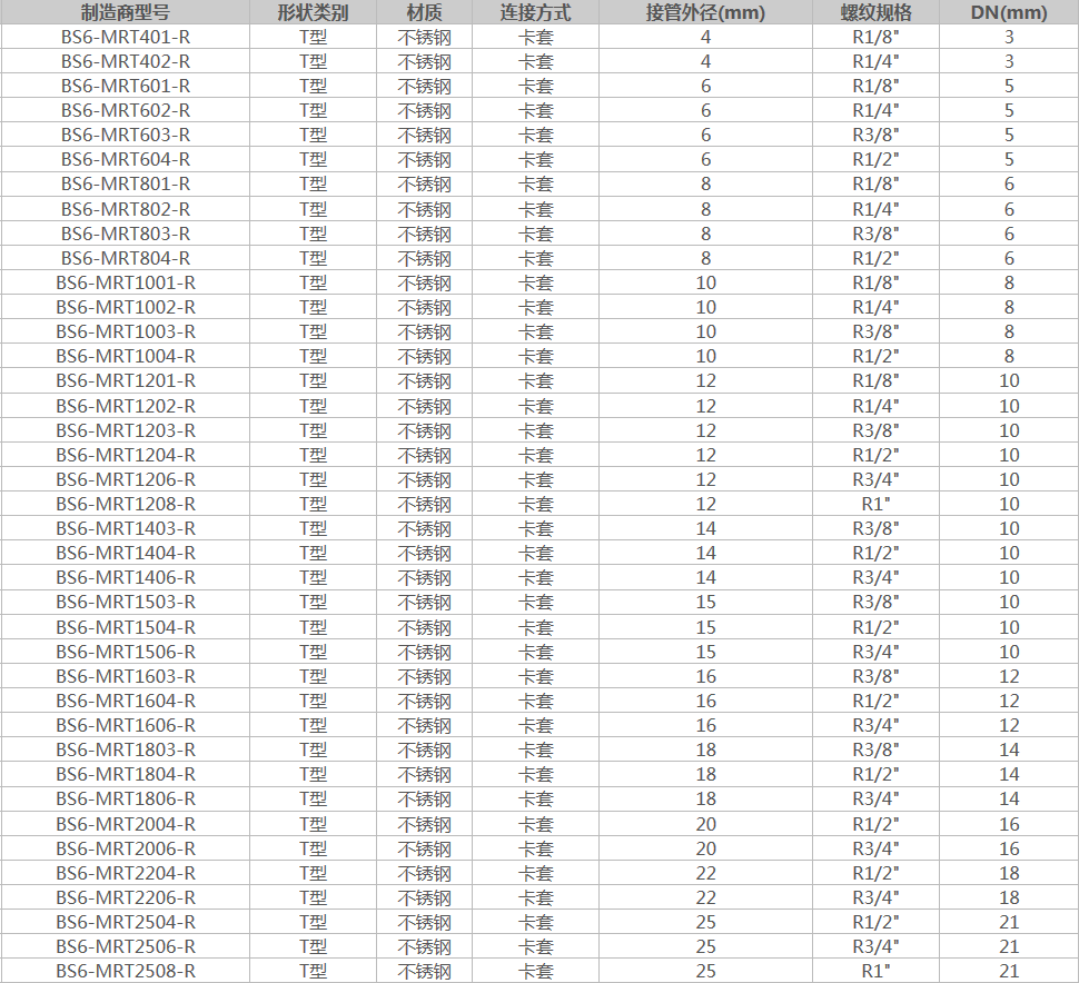 艾逊订货号:B1047335 原始型号:JPE D6-1/2"PT边外牙卡套三通,BS6-MRT604-R 品牌:JPE 品牌所属地:中国