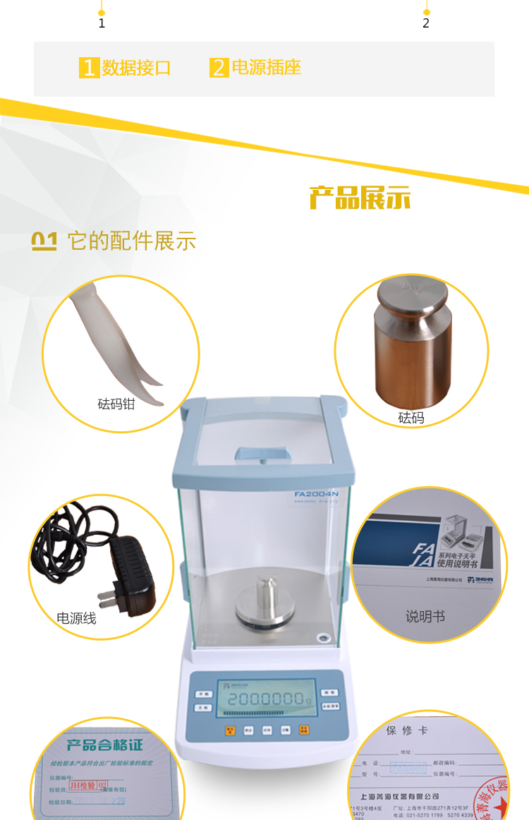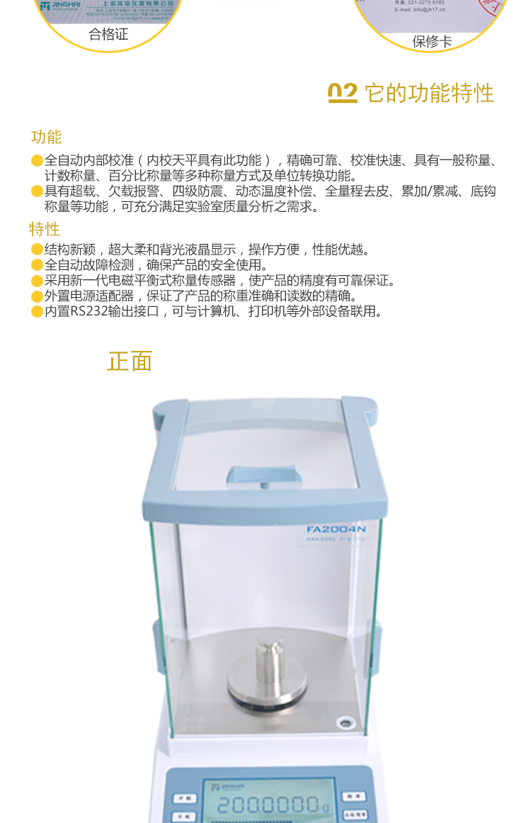菁海 电子分析天平,200g/0.1 mg,FA2004N |