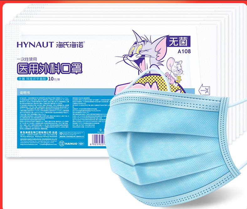 海氏海诺医用外科口罩灭菌无菌一次性医生用专用医疗医护三层防护 蓝色款100只/10袋 |