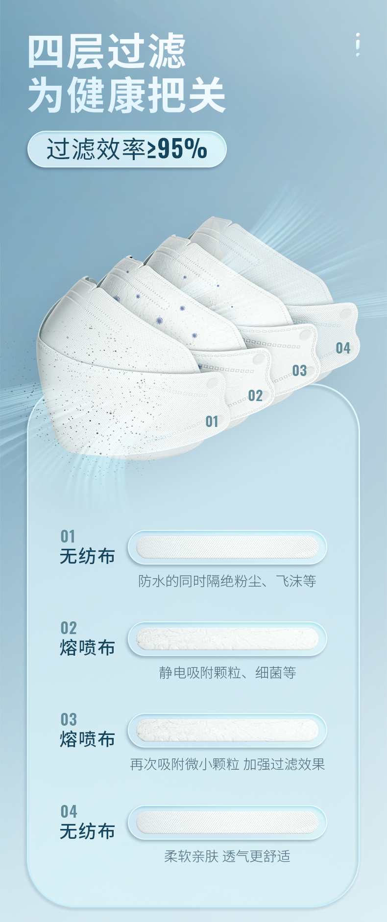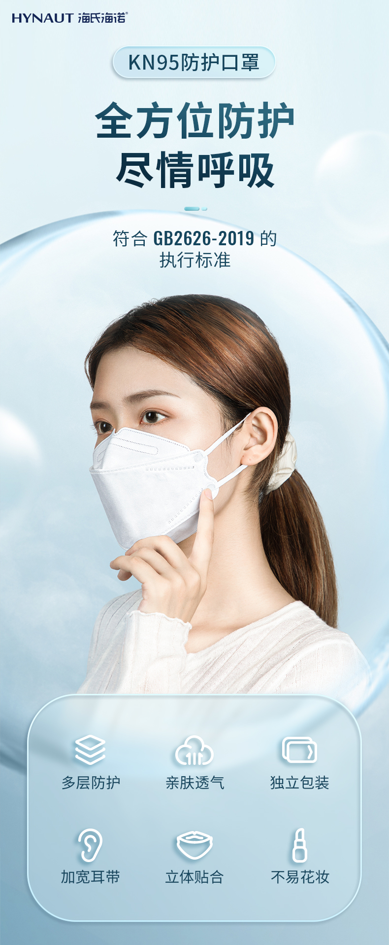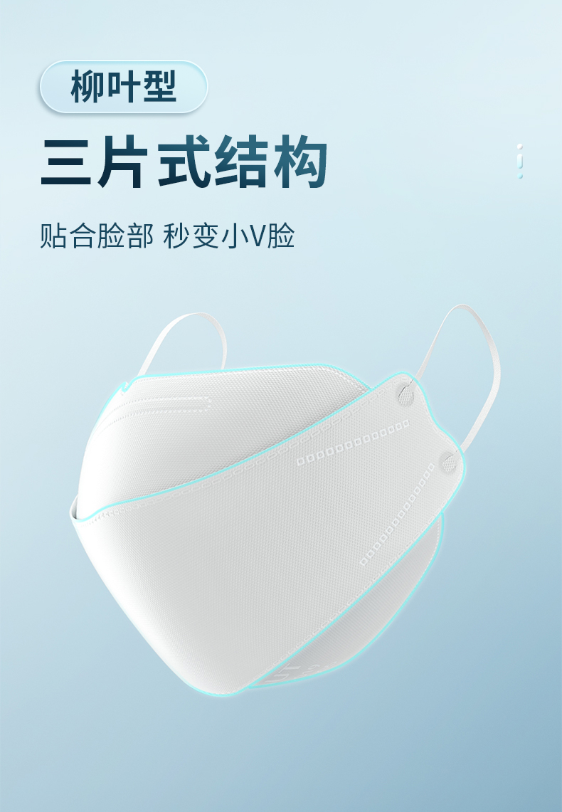 海氏海诺KN95防护口罩柳叶型鱼嘴3d立体一次性白色黑色成人冬季女 蓝色款共50只 每只独立包装 |