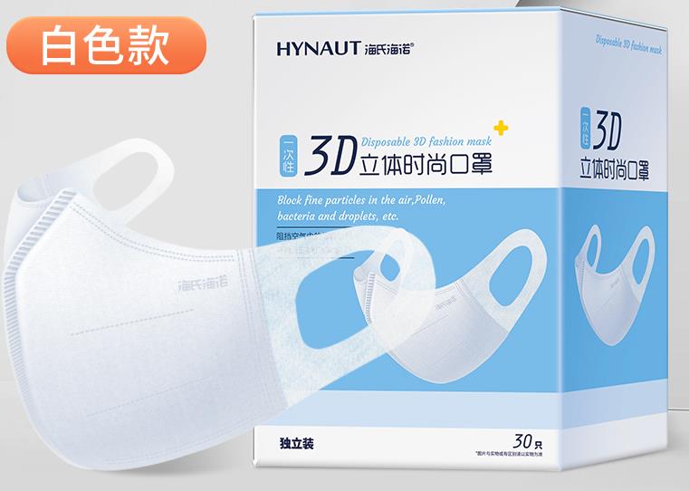 海氏海诺3D立体口罩一次性成人白色黑色男女2021新款时尚版高颜值 白色款1盒30只 |