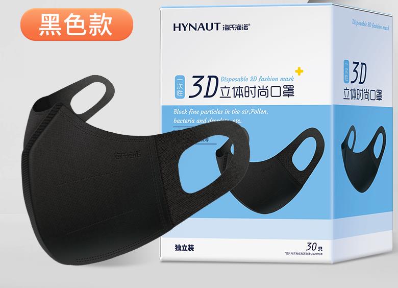 海氏海诺3D立体口罩一次性成人白色黑色男女2021新款时尚版高颜值 黑色款1盒30只 |