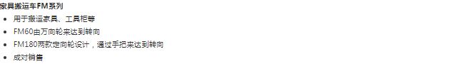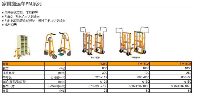 虎力 FM型家具搬运车,载重600kg 提升高度300mm,FM60 |