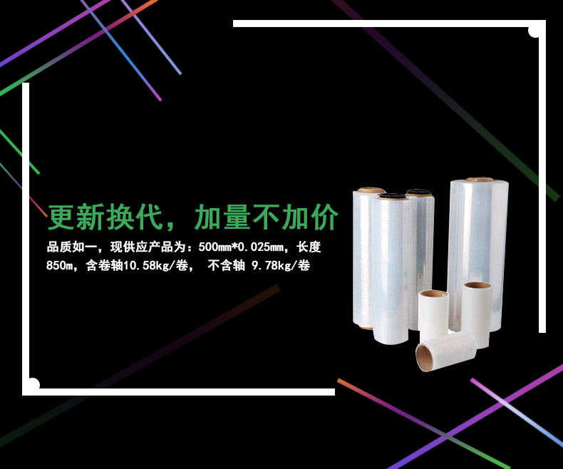 RAXWELL/瑞氪维尔的缠绕膜Raxwell阻拉型机用缠绕膜500mm*0.025mm,长度850m,含卷轴10.0kg/卷,不含轴9.0kg/卷