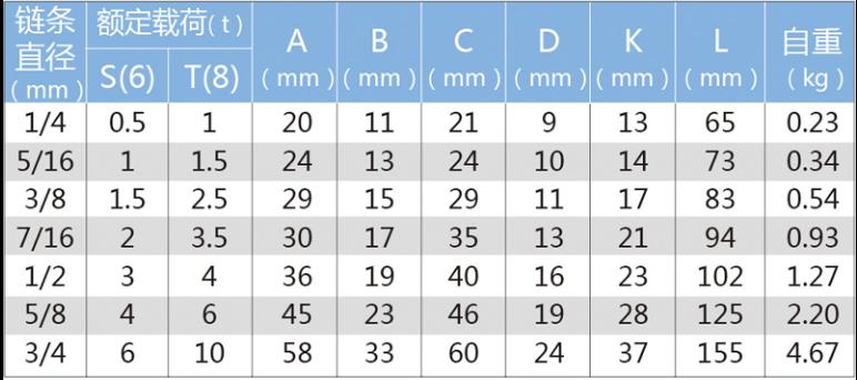巨力 S(6)级羊角滑钩(带保险卡),额定载荷(T):0.5 适用链条直径(mm):1/4,羊角滑钩S(6)-1/4 |