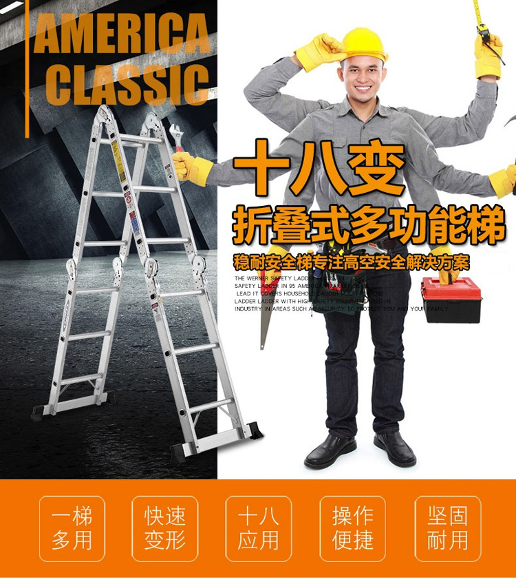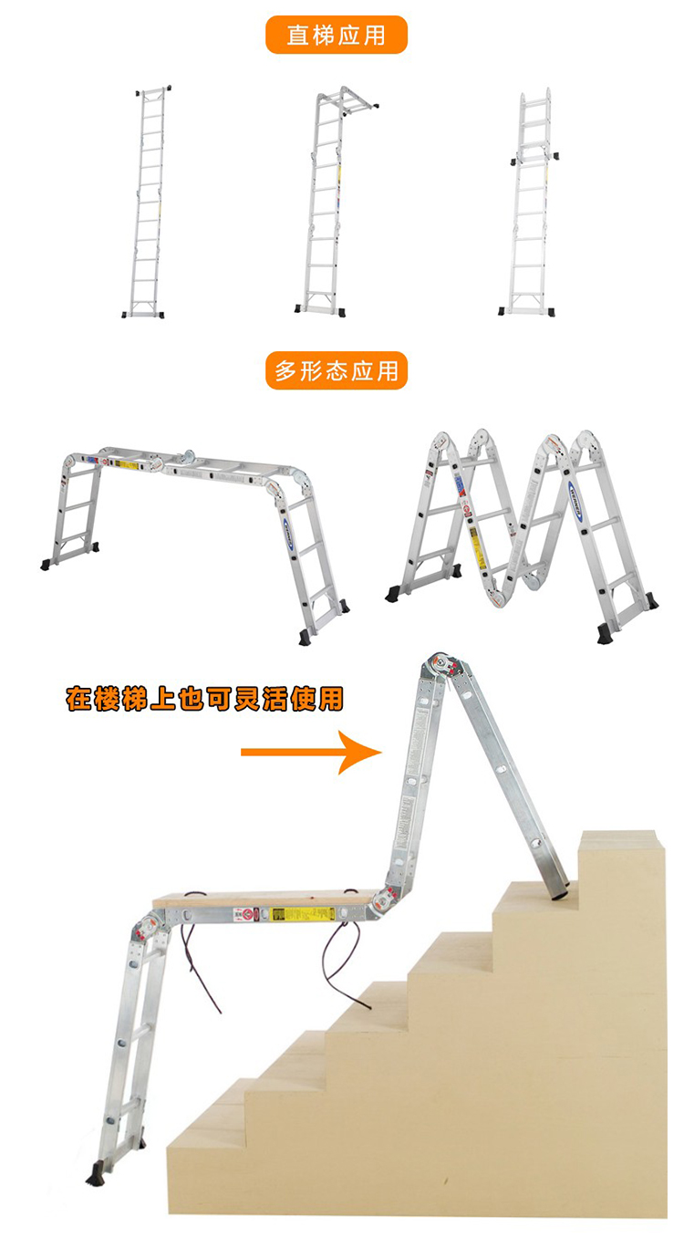 稳耐的多功能梯稳耐伸缩式多功能梯(带脚轮),踏台数:12额定载荷(KG):136工作高度(米):1.2~2.8,MTC-26CN