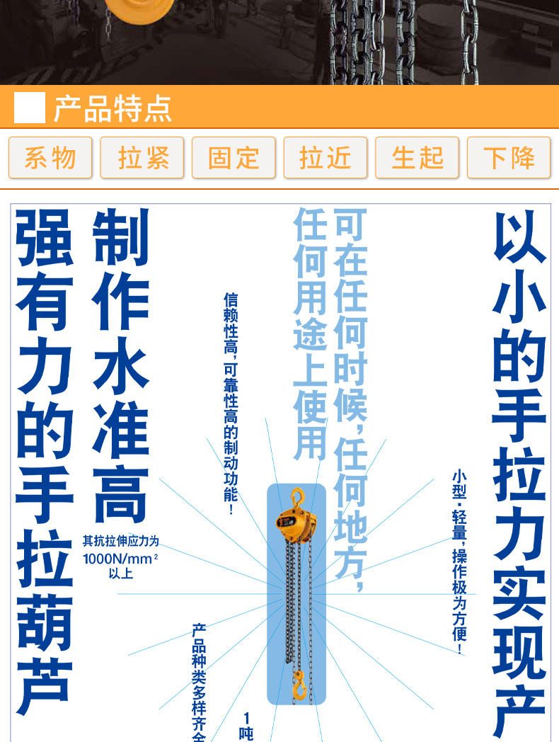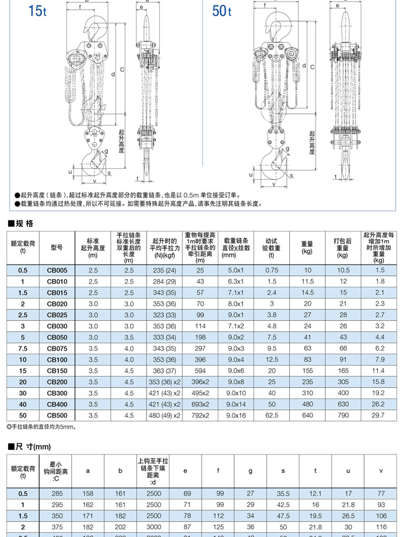 KITO 手拉葫芦,额定载重(T):50 标准起升高度(M):6,CB500-6M |