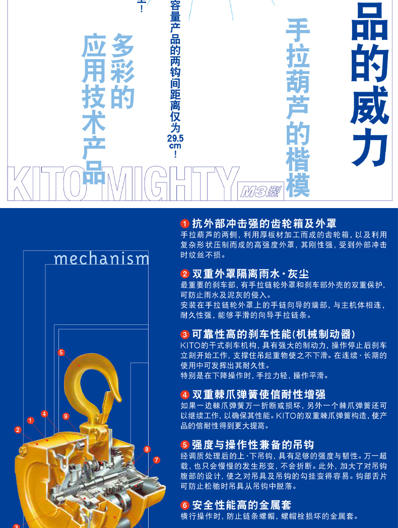 KITO 手拉葫芦,额定载重(T):30 标准起升高度(M):6,CB300-6M |