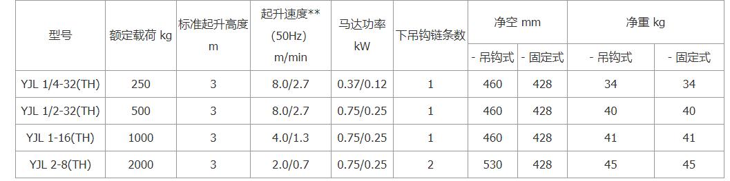 耶鲁 YJL1/2-10TH32S1 负载500Kg,8/2米/分双速电动环链葫芦 提升高度3米,YJL1/2-32 |