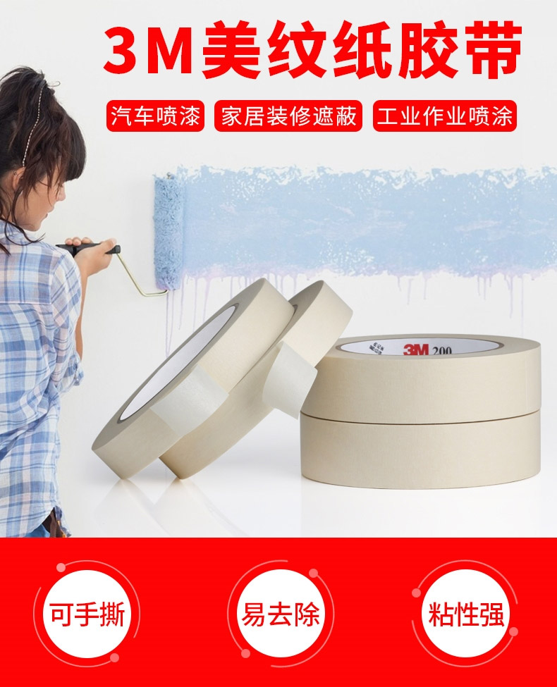 3M 单面平滑美纹纸常温遮蔽胶带, 本色 宽度13mm,型号:200-13mm |