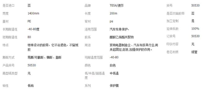 德莎 570 µm水基丙烯酸胶系汽车内部固定用PET绒布胶带,长度:40m,宽度:30mm,型号:tesa-50118 |