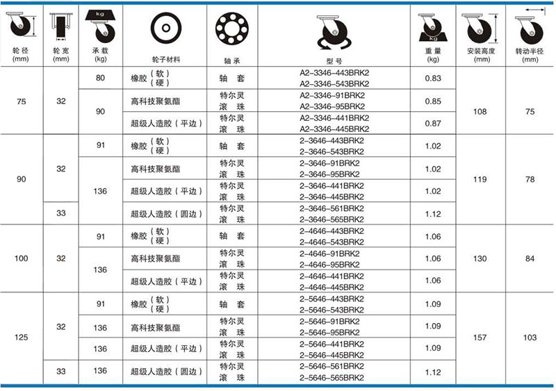 艾逊订货号:A1051946 原始型号:科顺 75橡胶(硬)双刹掣脚轮,轴承 特尔灵,A2-3346-443BRK2 品牌:科顺 品牌所属地:中国