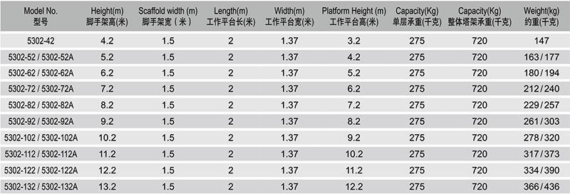 艾逊订货号:A1051981 原始型号:稳耐 双宽脚手架,额定载荷(KG):720 宽*高(米):1.5*5.2,5302-52 品牌:WERNER/稳耐 品牌所属地:中国