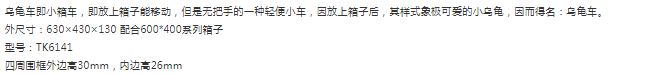 艾逊订货号:A1057029 原始型号:Raxwell 乌龟车,外尺寸(mm),430×330×130 配合400*300系列箱子,TK4131 品牌:RAXWELL/瑞氪维尔 品牌所属地:中国