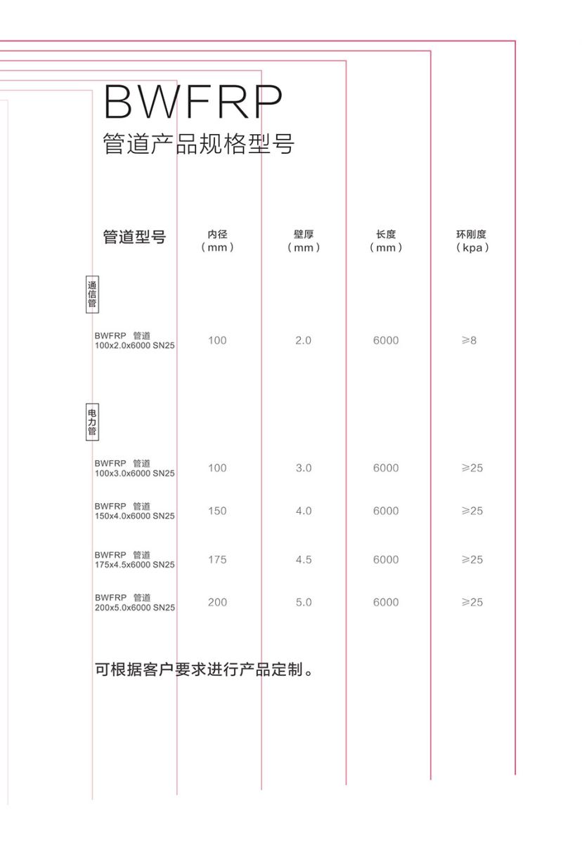 产品工艺:BWFRP纤维编绕拉挤电缆保护套管采用编绕拉挤工艺,通过精密编织、缠绕和拉挤工艺成型。bwfrp电力管产品由编织层、中间层、外表层构成,不同编织角度设计的内外编织层与纵向、环向复合的中间层共同构成理想的复合材料产品。这种新型的bwfrp纤维编织拉挤电缆保护管产品具有传统管材无法比拟的优点。BWFRP管道工艺应用相对于传统工艺的产品密度提高了35%。